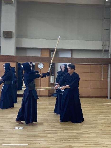 The first one is the practice of “ki” (energy of life) – to be quick and attentive to others as the occasion demands, which is applied to many facets of life. For example, in a master-student relationship, if the master’s Kendo uniform is dirty, you can say to him, “I’ll wash it.” to show your concern for him; or if you are riding a bicycle, you can prevent accidents by paying close attention to the road, anticipating when people might come around the corner.